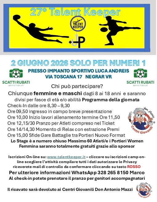 Approfondendo i termini Talent (Talento) e Keeper (Custode) chi meglio di un portiere ed il suo preparatore sanno cosa significhino questi termini. Tutte le settimane il n°1 custodisce la propria porta, a volte invano; chi meglio del preparatore può comprendere il 'peso' di avere in custodia il futuro un giovane Portiere. Saremo sempre con voi insieme alle nostre esperienze, a lungo costodite, pronte per essere ritrasmesse.